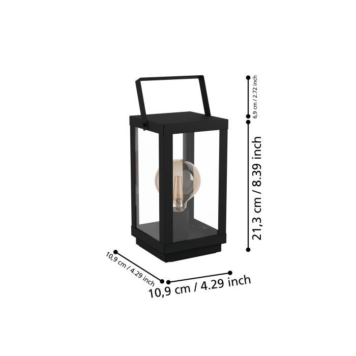 Επιτραπέζιο διακοσμητικό φωτιστικό της Eglo, σε μαύρο χρώμα. Διαθέτει ανταλλάξιμο λαμπτήρα συμβατό με ντουί E27.