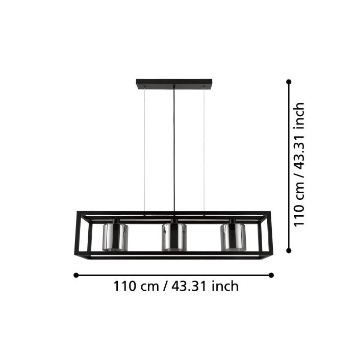 Τρίφωτο κρεμαστό φωτιστικό ράγα από την εταιρεία Eglo σε μαύρο χρώμα, με υποδοχές για 3 λαμπτήρες και ντουί E27. Διαθέτει vintage σχεδιασμό που προσδίδει στυλ και χαρακτήρα στον χώρο σας, ενώ ταυτόχρονα δημιουργεί μια ατμόσφαιρα που συνδυάζει την αισθητική του παρελθόντος με τον σύγχρονο σχεδιασμό. Είναι κατασκευασμένο από μέταλλο, ένα υλικό δημοφιλή στα κρεμαστά φωτιστικά οροφής, καθώς πέρα από τη μοντέρνα νότα που προσφέρει, είναι ιδιαίτερα ανθεκτικό στον χρόνο. Καθαρίζεται εύκολα με ένα πανί.