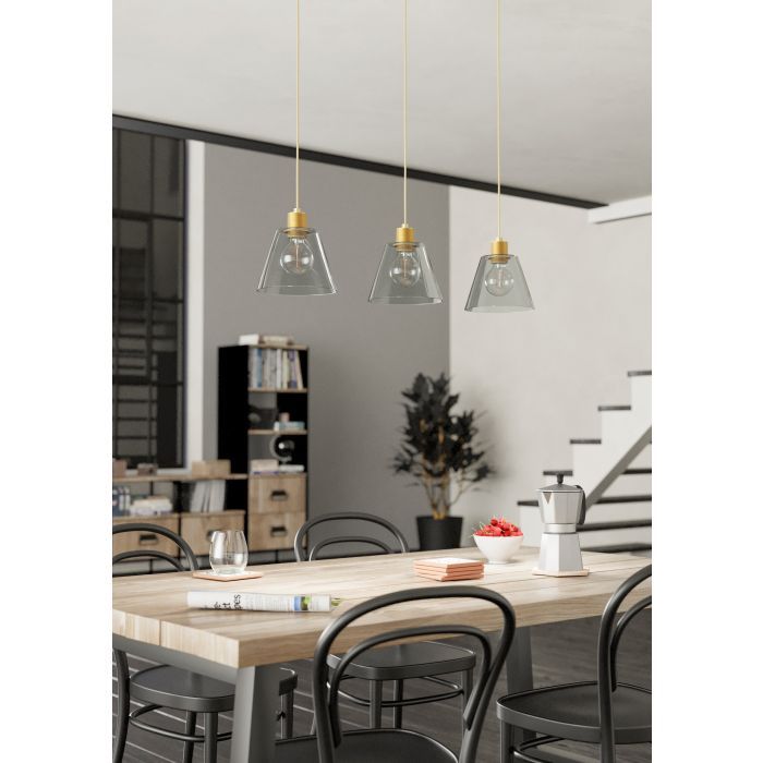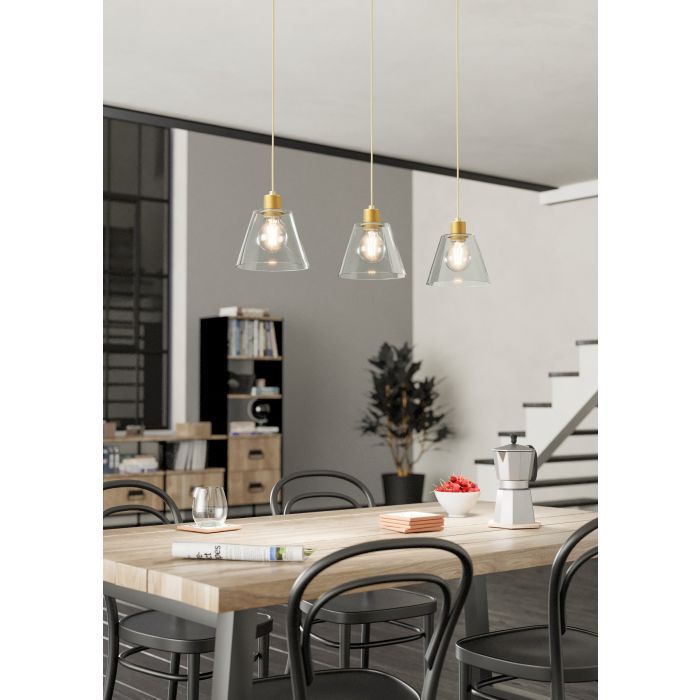 Τρίφωτο κρεμαστό φωτιστικό ράγα από την εταιρεία Eglo σε χρυσό χρώμα, με υποδοχές για 3 λαμπτήρες και ντουί E27. Διαθέτει vintage σχεδιασμό που προσδίδει στυλ και χαρακτήρα στον χώρο σας, ενώ ταυτόχρονα δημιουργεί μια ατμόσφαιρα που συνδυάζει την αισθητική του παρελθόντος με τον σύγχρονο σχεδιασμό. Είναι κατασκευασμένο από μέταλλο, ένα υλικό δημοφιλή στα κρεμαστά φωτιστικά οροφής, καθώς πέρα από τη μοντέρνα νότα που προσφέρει, είναι ιδιαίτερα ανθεκτικό στον χρόνο. Καθαρίζεται εύκολα με ένα πανί.