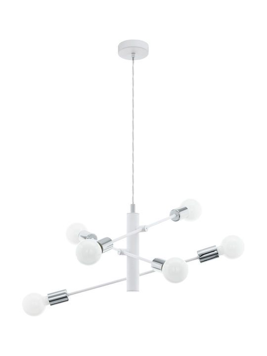 Πολύφωτο κρεμαστό φωτιστικό από την εταιρεία Eglo σε λευκό χρώμα, με υποδοχές για 6 λαμπτήρες και ντουί E27. Διαθέτει vintage σχεδιασμό που προσδίδει στυλ και χαρακτήρα στον χώρο σας, ενώ ταυτόχρονα δημιουργεί μια ατμόσφαιρα που συνδυάζει την αισθητική του παρελθόντος με τον σύγχρονο σχεδιασμό. Είναι κατασκευασμένο από μέταλλο, ένα υλικό δημοφιλή στα κρεμαστά φωτιστικά οροφής, καθώς πέρα από τη μοντέρνα νότα που προσφέρει, είναι ιδιαίτερα ανθεκτικό στον χρόνο. Καθαρίζεται εύκολα με ένα πανί.