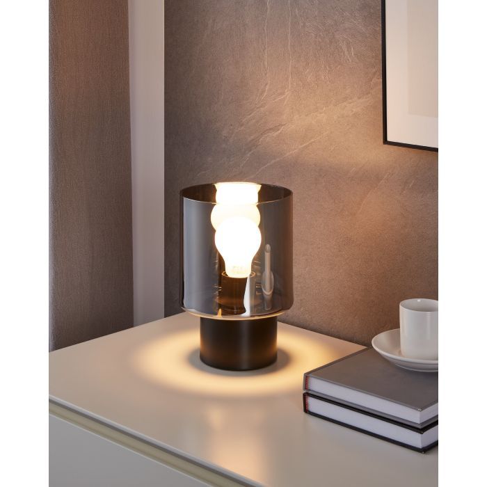 Επιτραπέζιο διακοσμητικό φωτιστικό της Eglo, σε μαύρο χρώμα. Διαθέτει ανταλλάξιμο λαμπτήρα συμβατό με ντουί E27.