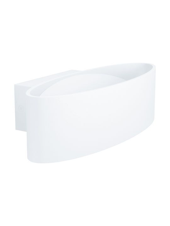 Μοντέρνο φωτιστικό τοίχου της Eglo σε λευκό χρώμα, με πλάτος 27εκ. Το ενσωματωμένο LED που διαθέτει εκπέμπει θερμό λευκό φως που αποδίδεται στην κλίμακα Kelvin με τιμές από 2400Κ έως 3800Κ. Αυτοί οι τόνοι του λευκού είναι πιο κίτρινοι σε σχέση με το φυσικό φως.