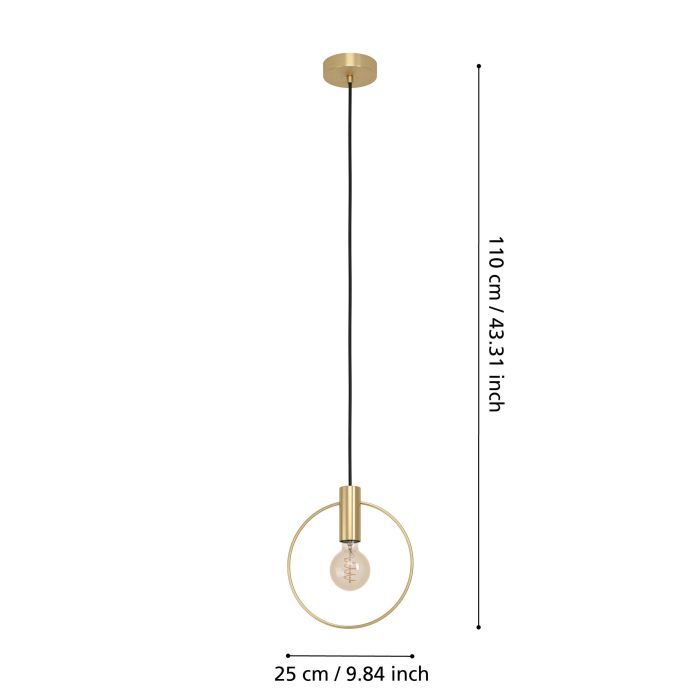 Μονόφωτο κρεμαστό φωτιστικό από την εταιρεία Eglo σε χρυσό χρώμα, με υποδοχή για έναν λαμπτήρα και ντουί E27. Διαθέτει vintage σχεδιασμό που προσδίδει στυλ και χαρακτήρα στον χώρο σας, ενώ ταυτόχρονα δημιουργεί μια ατμόσφαιρα που συνδυάζει την αισθητική του παρελθόντος με τον σύγχρονο σχεδιασμό. Είναι κατασκευασμένο από μέταλλο, ένα υλικό δημοφιλή στα κρεμαστά φωτιστικά οροφής, καθώς πέρα από τη μοντέρνα νότα που προσφέρει, είναι ιδιαίτερα ανθεκτικό στον χρόνο. Καθαρίζεται εύκολα με ένα πανί.