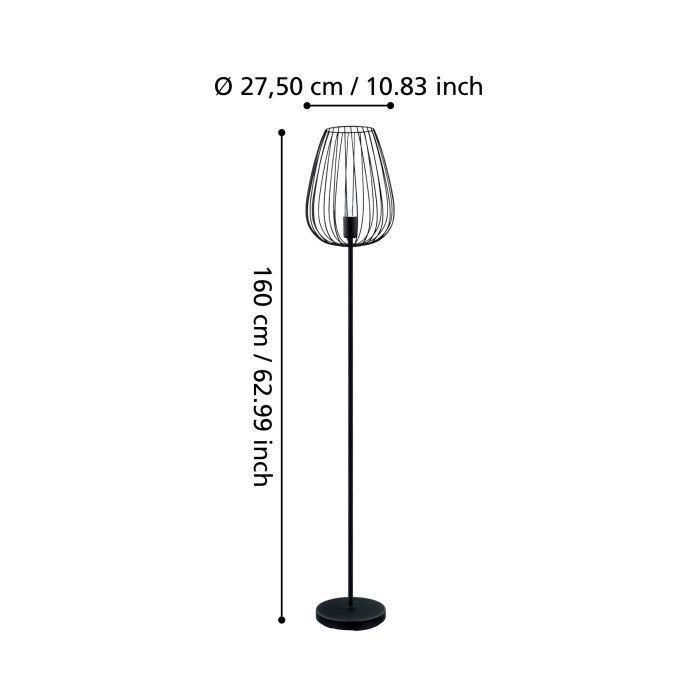 Eglo Newtown Vintage Φωτιστικό Δαπέδου Υ159.5xΜ27.5εκ. με Ντουί για Λαμπτήρα E27 σε Μαύρο Χρώμα 49474