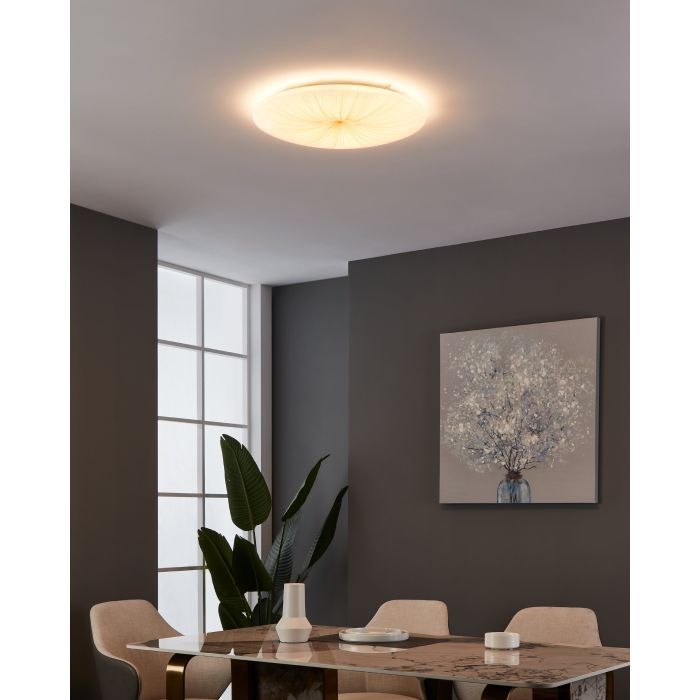Μοντέρνα πλαφονιέρα οροφής της Eglo σε λευκό χρώμα, από μέταλλο. Διαθέτει ενσωματωμένο LED.