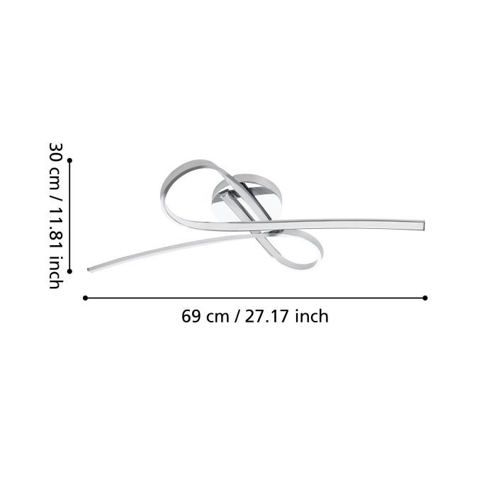 Μοντέρνα πλαφονιέρα οροφής της Eglo σε ασημί χρώμα, από μέταλλο. Διαθέτει ενσωματωμένο LED, το οποίο εκπέμπει θερμό λευκό φως που αποδίδεται στην κλίμακα Kelvin με τιμές από 2400Κ έως 3800Κ. Αυτοί οι τόνοι του λευκού είναι πιο κίτρινοι σε σχέση με το φυσικό φως.