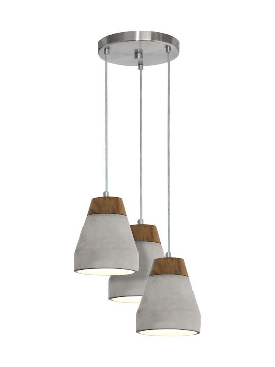 Eglo Tarega Μοντέρνο Κρεμαστό Φωτιστικό Τρίφωτο με Ντουί E27 σε Γκρι Χρώμα 95526