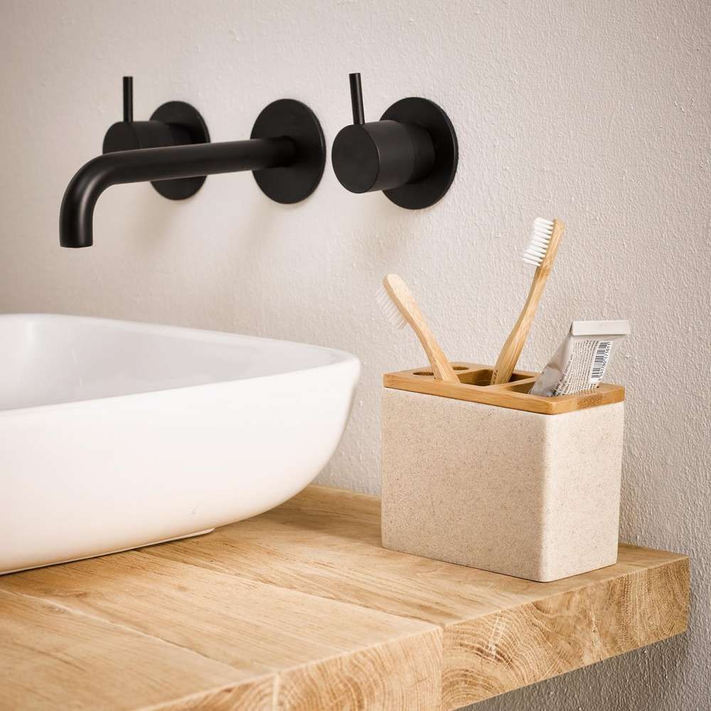 Ο συνδυασμός υλικών είναι η σύγχρονη τάση. Και η σειρά αξεσουάρ μπάνιου Grace της Sealskin από πολυρεζίνη σε συνδυασμό με τόνους μπαμπού ταιριάζει απόλυτα με αυτή την τάση. Αυτή η οδοντοβουρτσοθήκη μπορεί να φιλοξενήσει μια ηλεκτρική οδοντόβουρτσα και έχει χώρο για τις κεφαλές βουρτσίσματος και για ένα σωληνάριο οδοντόκρεμας. Η θήκη καθαρίζεται εύκολα με ένα νωπό πανί.