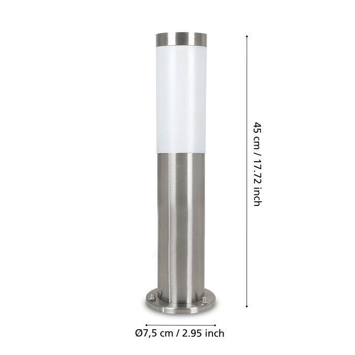 Ύψος Φωτιστικού(σε χιλ./ίντσα):450 / 17,72Διάμετρος Φωτιστικού(σε χιλ./ίντσα):75 / 2,95Διάμετρος Βάσης (σε χιλ./ίντσα):115 / 4,53Καθαρό Βάρος (kg):0,71