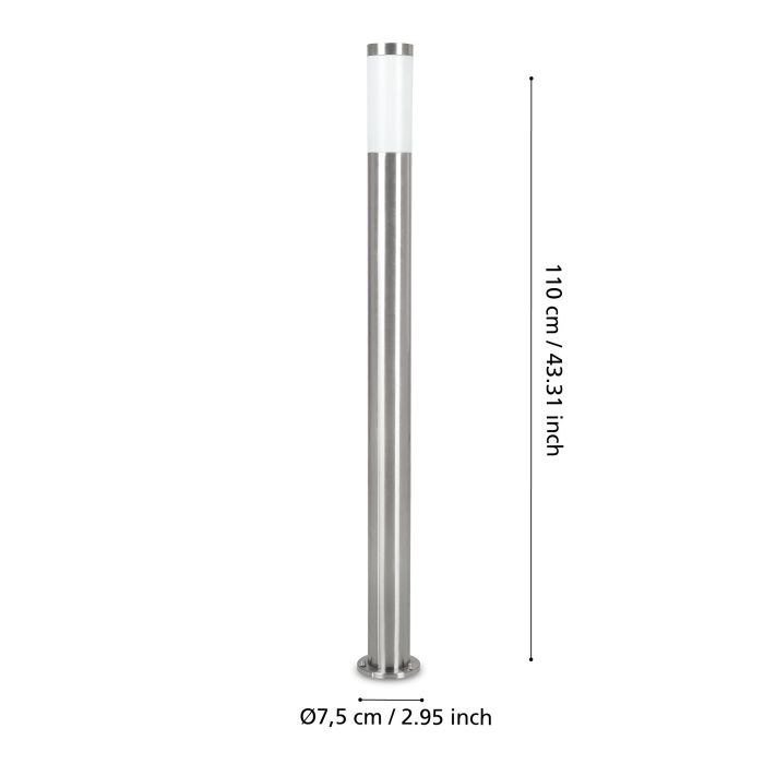 Ύψος Φωτιστικού(σε χιλ./ίντσα):1.100 / 43,31Διάμετρος Φωτιστικού(σε χιλ./ίντσα):75 / 2,95Διάμετρος Βάσης (σε χιλ./ίντσα):115 / 4,53Καθαρό Βάρος (kg):1,46