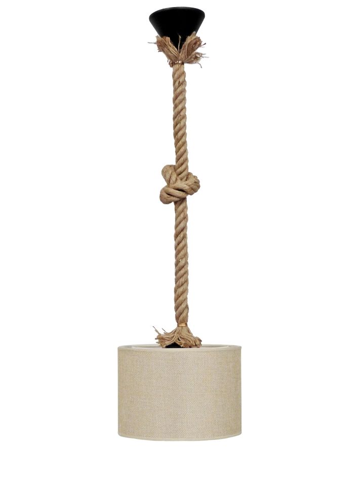 Κρεμαστό φωτιστικό με καπέλο και φυσικό σχοινί κόμπο, σε χρώμα μπεζ ΗΚ-02 1L ROPE Φ20