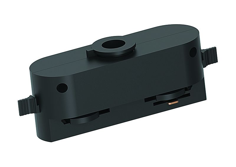 Μαύρο εξάρτημα για μονοφασική ράγα το οποίο μπορεί να χρησιμοποιηθεί για να κρεμαστεί κάποιο μονόφωτο ή φωτιστικό από αυτήν. Μαύρο εξάρτημα για μονοφασική ράγα το οποίο μπορεί να χρησιμοποιηθεί για να κρεμαστεί κάποιο μονόφωτο ή φωτιστικό από αυτήν.