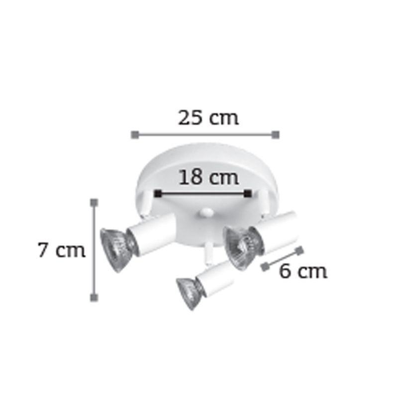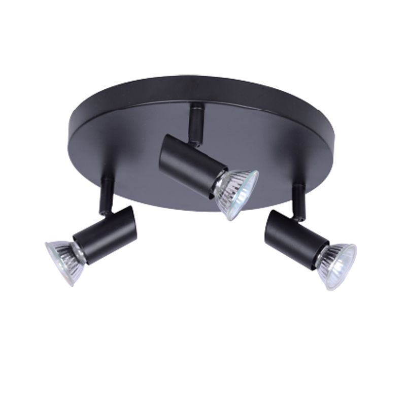 Πρόκειται για ένα μεταλλικό σποτ σε μαύρη απόχρωση με τρεις λαμπτήρες. Το μπροστινό μέρος του κινείται προς οποιαδήποτε κατεύθυνση. Πρόκειται για ένα μεταλλικό σποτ σε μαύρη απόχρωση με τρεις λαμπτήρες. Το μπροστινό μέρος του κινείται προς οποιαδήποτε κατεύθυνση.