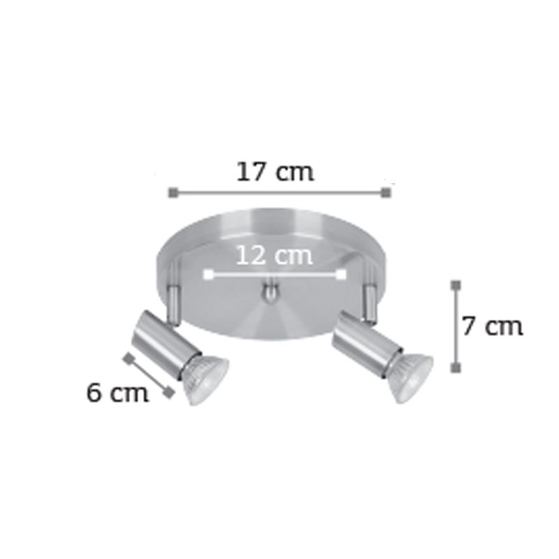 Πρόκειται για ένα μεταλλικό σποτ σε νίκελ ματ απόχρωση με δύο λαμπτήρες. Το μπροστινό μέρος του κινείται προς οποιαδήποτε κατεύθυνση. Πρόκειται για ένα μεταλλικό σποτ σε νίκελ ματ απόχρωση με δύο λαμπτήρες. Το μπροστινό μέρος του κινείται προς οποιαδήποτε κατεύθυνση.