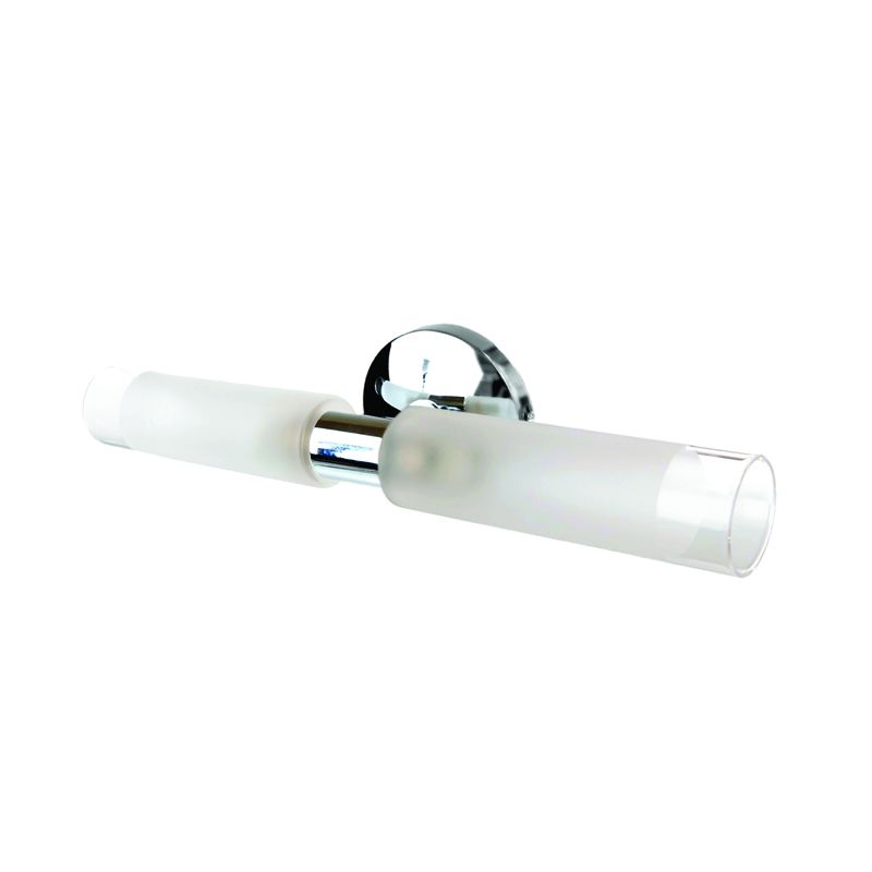 Πρόκειται για ένα επιτοίχιο φωτιστικό κατασκευασμένο από μέταλλο σε χρώμιο απόχρωση με δύο λαμπτήρες που καλύπτονται από κυλινδρικό γυαλί αμμοβολής με διάφανες λεπτομέρειες. Είναι η ιδανική επιλογή για φωτισμό μπάνιου τοποθετημένο πάνω από τον καθρέπτη αφού το φως διαχέεται ομοιόμορφα. Πρόκειται για ένα επιτοίχιο φωτιστικό κατασκευασμένο από μέταλλο σε χρώμιο απόχρωση με δύο λαμπτήρες που καλύπτονται από κυλινδρικό γυαλί αμμοβολής με διάφανες λεπτομέρειες. Είναι η ιδανική επιλογή για φωτισμό μπάνιου τοποθετημένο πάνω από τον καθρέπτη αφού το φως διαχέεται ομοιόμορφα.
