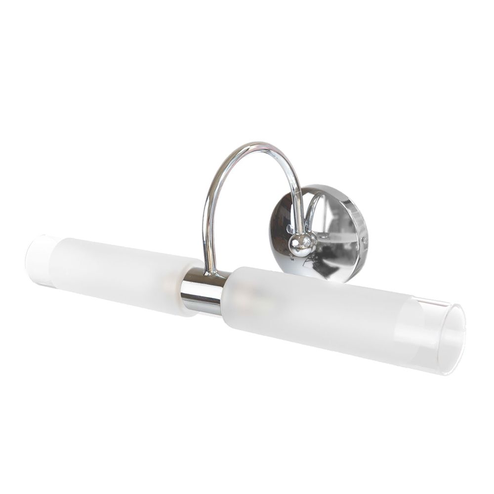 Πρόκειται για ένα επιτοίχιο φωτιστικό κατασκευασμένο από μέταλλο σε χρώμιο απόχρωση με δύο λαμπτήρες που καλύπτονται από κυλινδρικό γυαλί αμμοβολής με διάφανες λεπτομέρειες. Είναι η ιδανική επιλογή για φωτισμό μπάνιου τοποθετημένο πάνω από τον καθρέπτη αφού το φως διαχέεται ομοιόμορφα. Πρόκειται για ένα επιτοίχιο φωτιστικό κατασκευασμένο από μέταλλο σε χρώμιο απόχρωση με δύο λαμπτήρες που καλύπτονται από κυλινδρικό γυαλί αμμοβολής με διάφανες λεπτομέρειες. Είναι η ιδανική επιλογή για φωτισμό μπάνιου τοποθετημένο πάνω από τον καθρέπτη αφού το φως διαχέεται ομοιόμορφα.