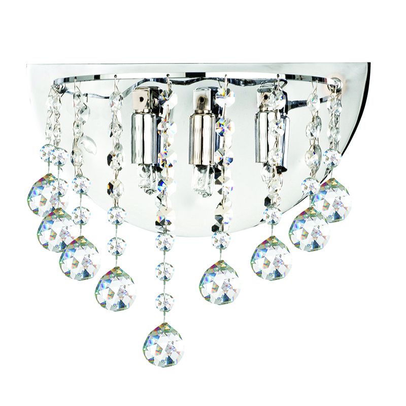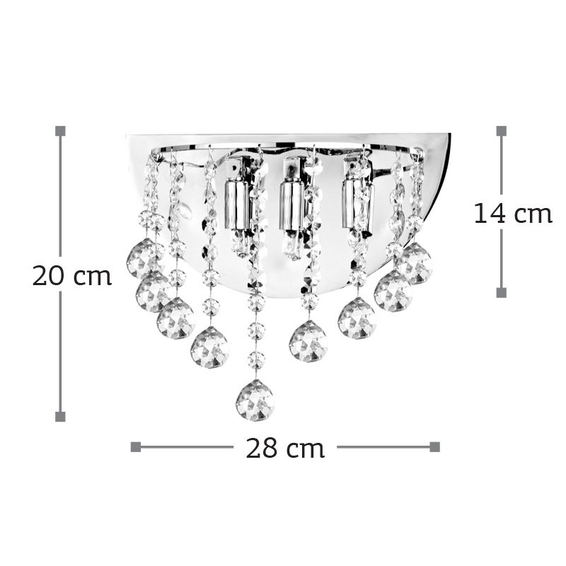Πρόκειται για ένα χρώμιο μεταλλικό επιτοίχιο φωτιστικό. Οι τρεις λαμπτήρες καλύπτονται από διάφανα στρογγυλά κρύσταλλα, στο τελείωμα των οποίων υπάρχουν διάφανες μπάλες. Όταν είναι αναμμένο το αποτέλεσμα είναι εντυπωσιακό! Πρόκειται για ένα χρώμιο μεταλλικό επιτοίχιο φωτιστικό. Οι τρεις λαμπτήρες καλύπτονται από διάφανα στρογγυλά κρύσταλλα, στο τελείωμα των οποίων υπάρχουν διάφανες μπάλες. Όταν είναι αναμμένο το αποτέλεσμα είναι εντυπωσιακό!