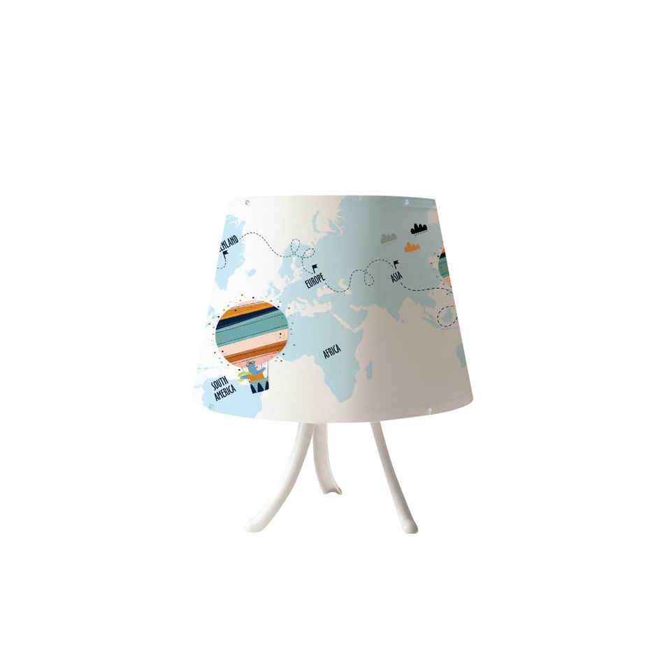Πρόκειται για ένα επιτραπέζιο παιδικό φωτιστικό από μέταλλο σε λευκή απόχρωση με πολύχρωμο καπέλο.  Πρόκειται για ένα επιτραπέζιο παιδικό φωτιστικό από μέταλλο σε λευκή απόχρωση με πολύχρωμο καπέλο.