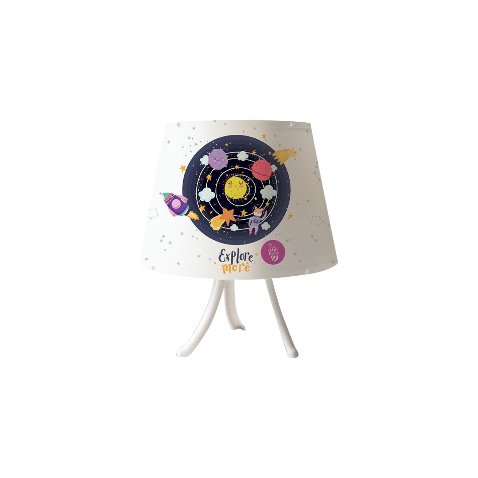 Πρόκειται για ένα επιτραπέζιο παιδικό φωτιστικό από μέταλλο σε λευκή απόχρωση με πολύχρωμο καπέλο. Πρόκειται για ένα επιτραπέζιο παιδικό φωτιστικό από μέταλλο σε λευκή απόχρωση με πολύχρωμο καπέλο.