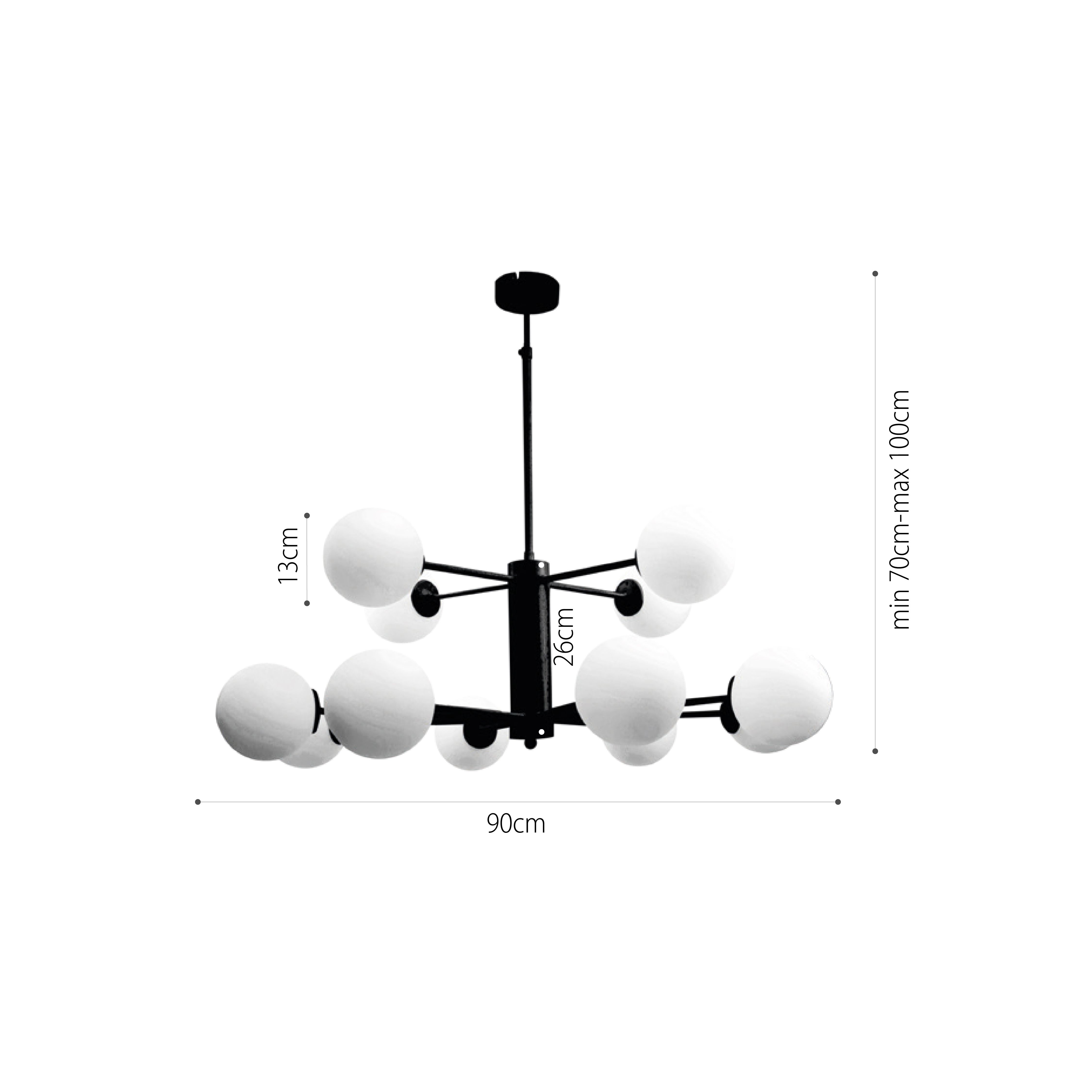 InLight Κρεμαστό φωτιστικό από μαύρο μέταλλο και λευκή οπαλίνα 8XG9 D:75cm 5315-8Ειδική Τιμή 208,40 € Κανονική τιμή 258,42 € -