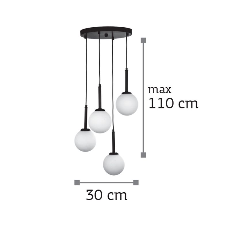 InLight Κρεμαστό φωτιστικό από μαύρο μέταλλο και λευκή οπαλίνα 4XG9 D:30cm 4514-4 ΡΟΖΕΤΑ
