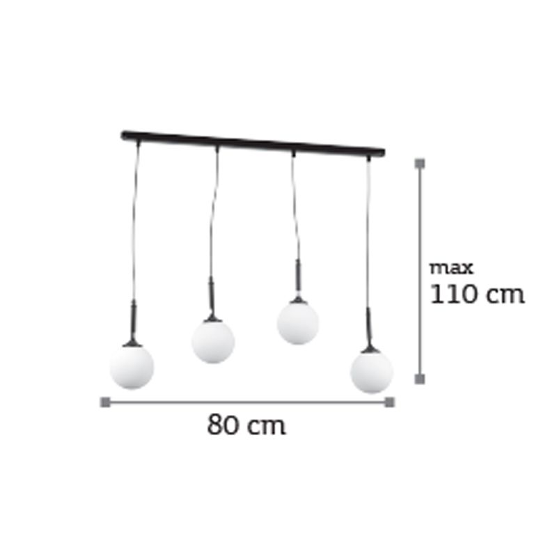InLight Κρεμαστό φωτιστικό από μαύρο μέταλλο και λευκή οπαλίνα 4XG9 D:80cm 4514-4 ΡΑΓΑ