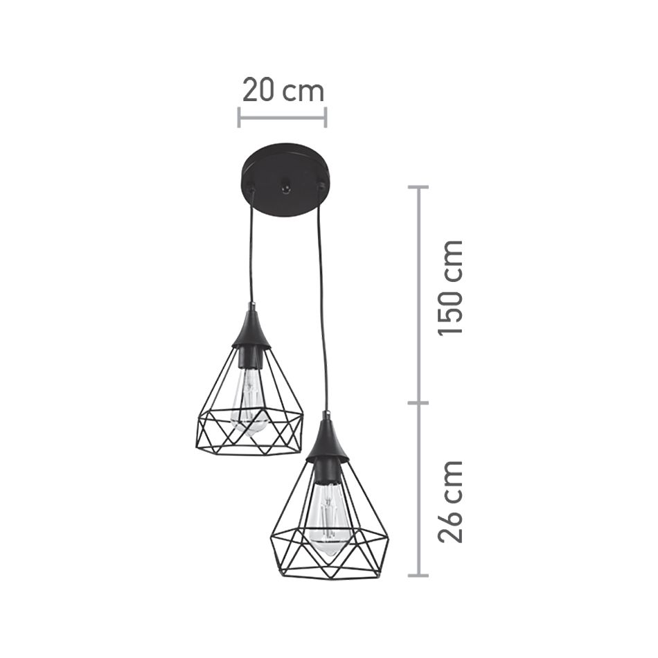 InLight Κρεμαστό φωτιστικό από μαύρο μέταλλο 2XE27 D:20cm 4024-2-BL-ROSETTE