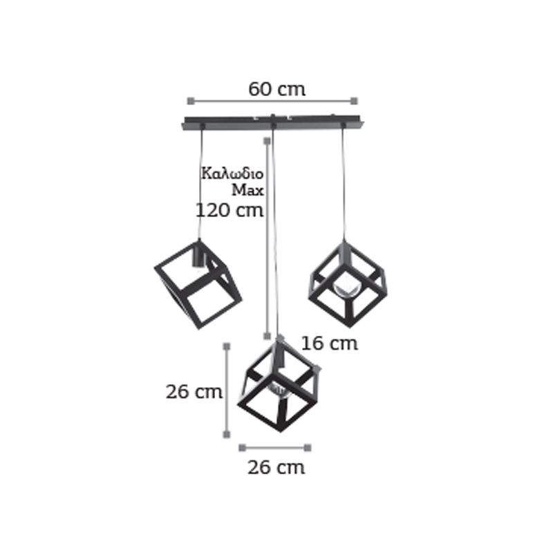 InLight Κρεμαστό φωτιστικό από μαύρο μέταλλο 3XE27 D:60cm 4400-3-BL-ΡΑΓΑ