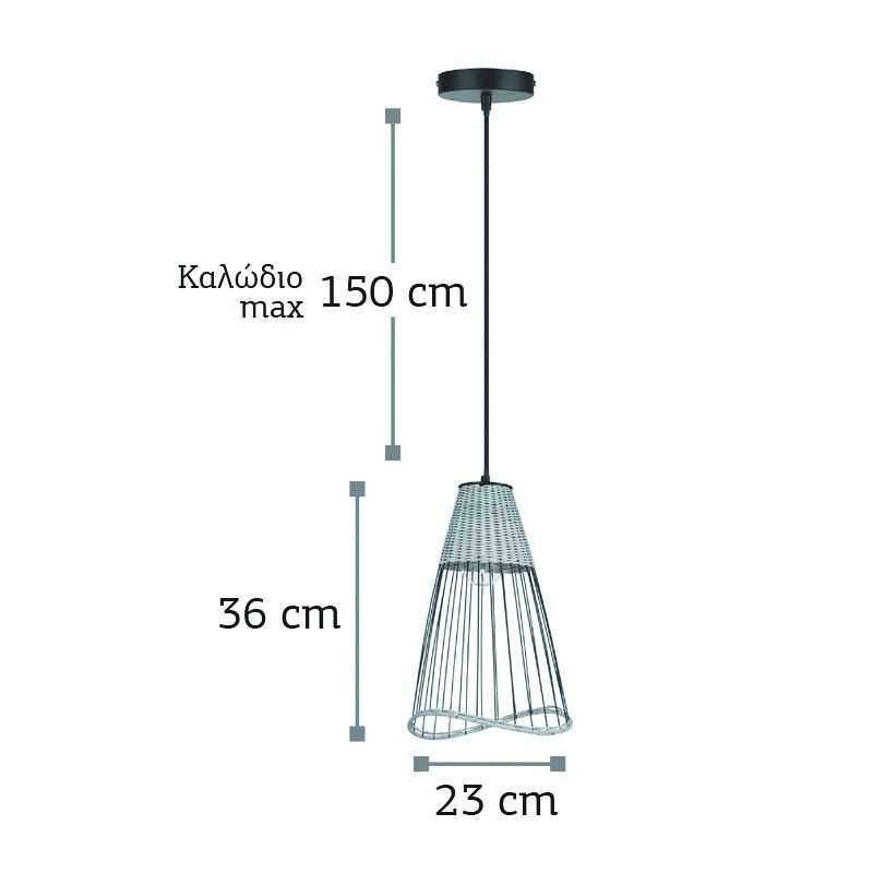 Ένα κρεμαστό φωτιστικό κατασκευασμένο από ρατάν κατάλληλο για ποικίλους εσωτερικούς χώρους. Αποτελεί την ιδανική επιλογή για όποιον επιθυμεί μια πιο χαλαρή διάθεση στον χώρο του. Το μαύρο μέταλλο προσδίδει ένα ιδιαίτερο design. Η ανάρτηση προσαρμόζεται στο ύψος του κάθε χώρου. Ένα κρεμαστό φωτιστικό κατασκευασμένο από ρατάν κατάλληλο για ποικίλους εσωτερικούς χώρους. Αποτελεί την ιδανική επιλογή για όποιον επιθυμεί μια πιο χαλαρή διάθεση στον χώρο του. Το μαύρο μέταλλο προσδίδει ένα ιδιαίτερο design. Η ανάρτηση προσαρμόζεται στο ύψος του κάθε χώρου.