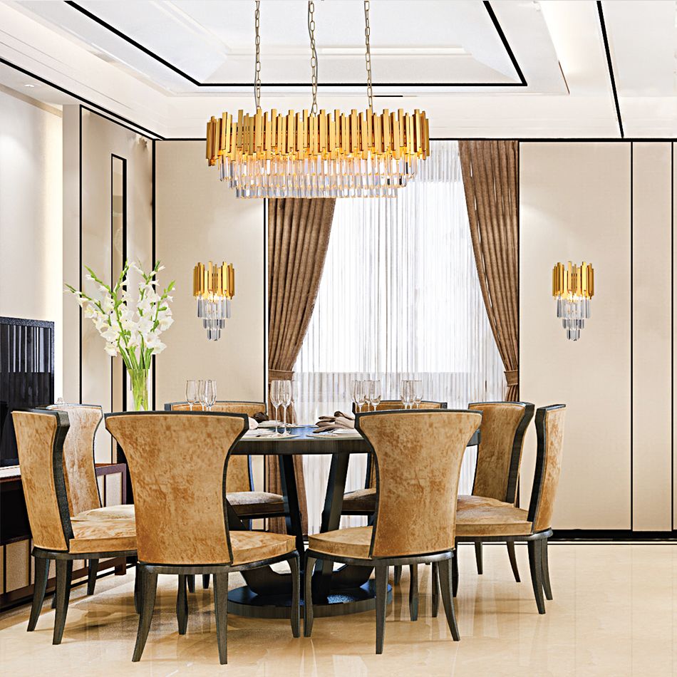 InLight Κρεμαστό φωτιστικό από χρυσαφί αλουμίνιο και κρύσταλλα 12XE14 D:100cm 6069-12
