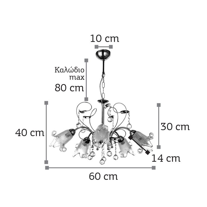 InLight Κρεμαστό φωτιστικό από χρώμιο μέταλλο κρύσταλλα και λευκό γυαλί 5XE14 D:60cm 5300-5-CH