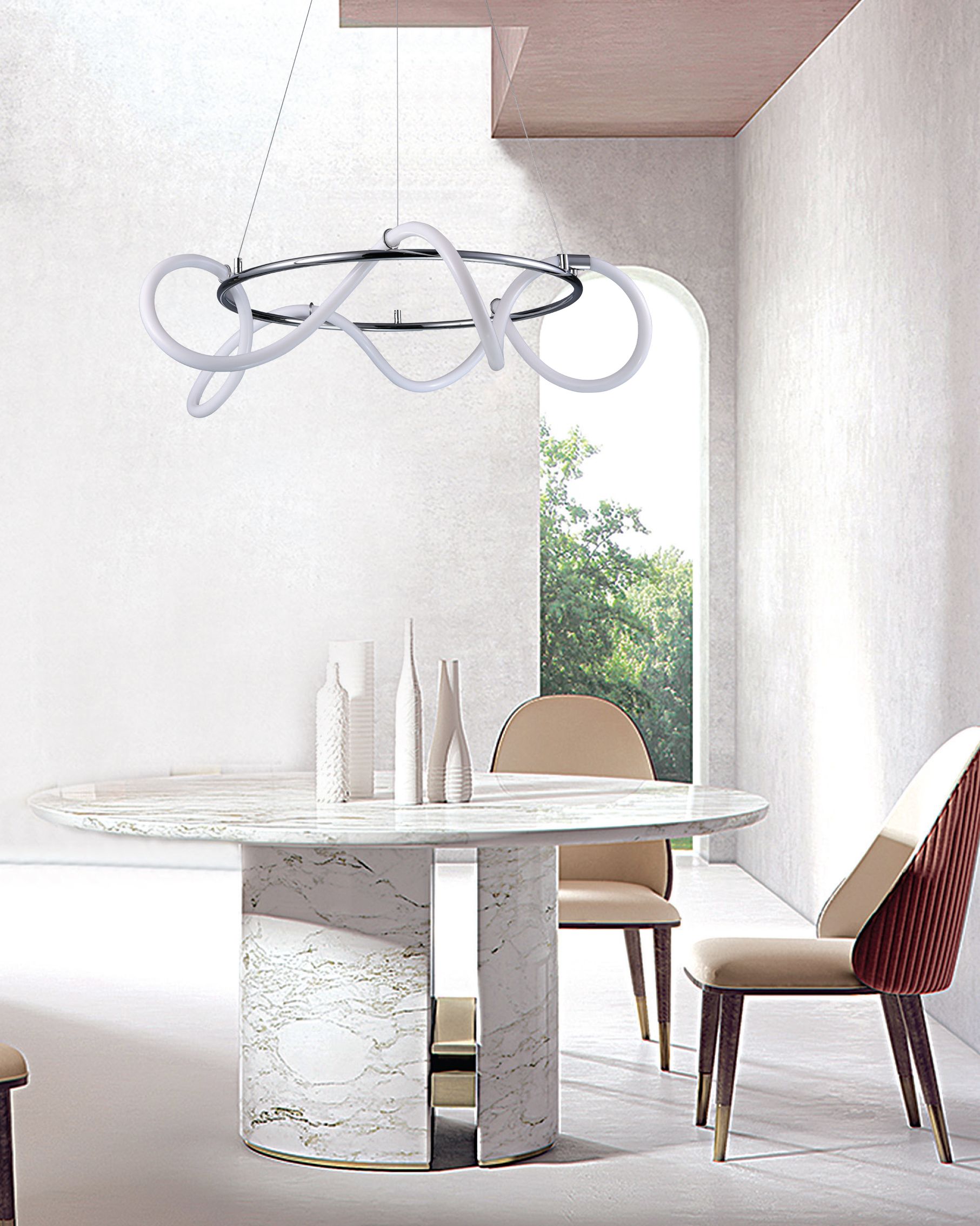 InLight Κρεμαστό φωτιστικό LED 80W 3000K από χρώμιο μέταλλο και σωλήνα σιλικόνης D:80cm 6017-A-CH