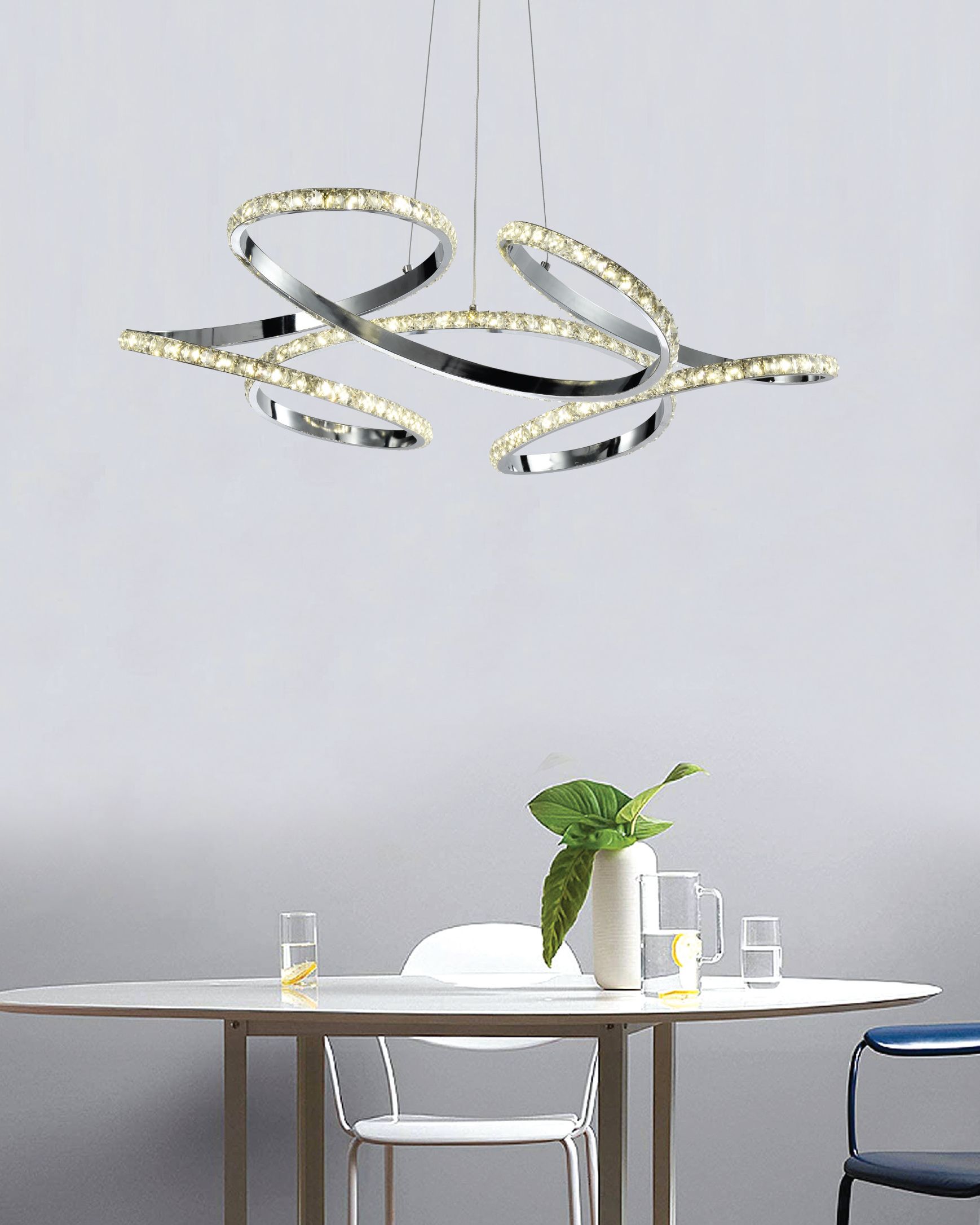 InLight Κρεμαστό φωτιστικό LED 85W 4000K από χρώμιο αλουμίνιο και κρύσταλλα D:60cm 6181-Χρώμιο
