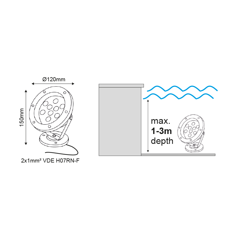 LED LUMINAIRE SS304 IP68 6W 450LM 6000K 60° 12V AC/DC Ra>80 30.000HRS ACA AQUET660