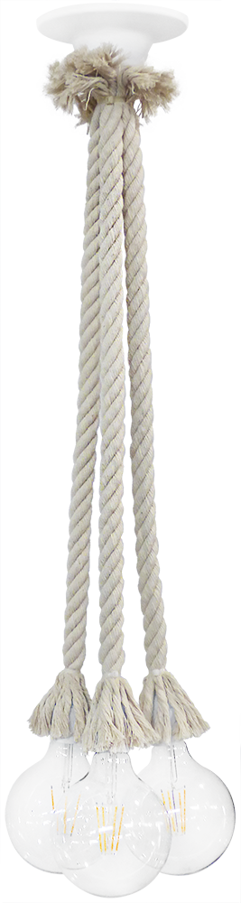Χειροποίητο φωτιστικό με 3 φώτα & βάση πλαστική λευκή Τεχνικά χαρακτηριστικά βαμβακερό σχοινί H75cm 3 x Ε/27 Χρώμα εκρού 3 x E/27 LED Δεν συμπεριλαμβάνονται οι λαμπτήρες Ελληνικό Προϊόν