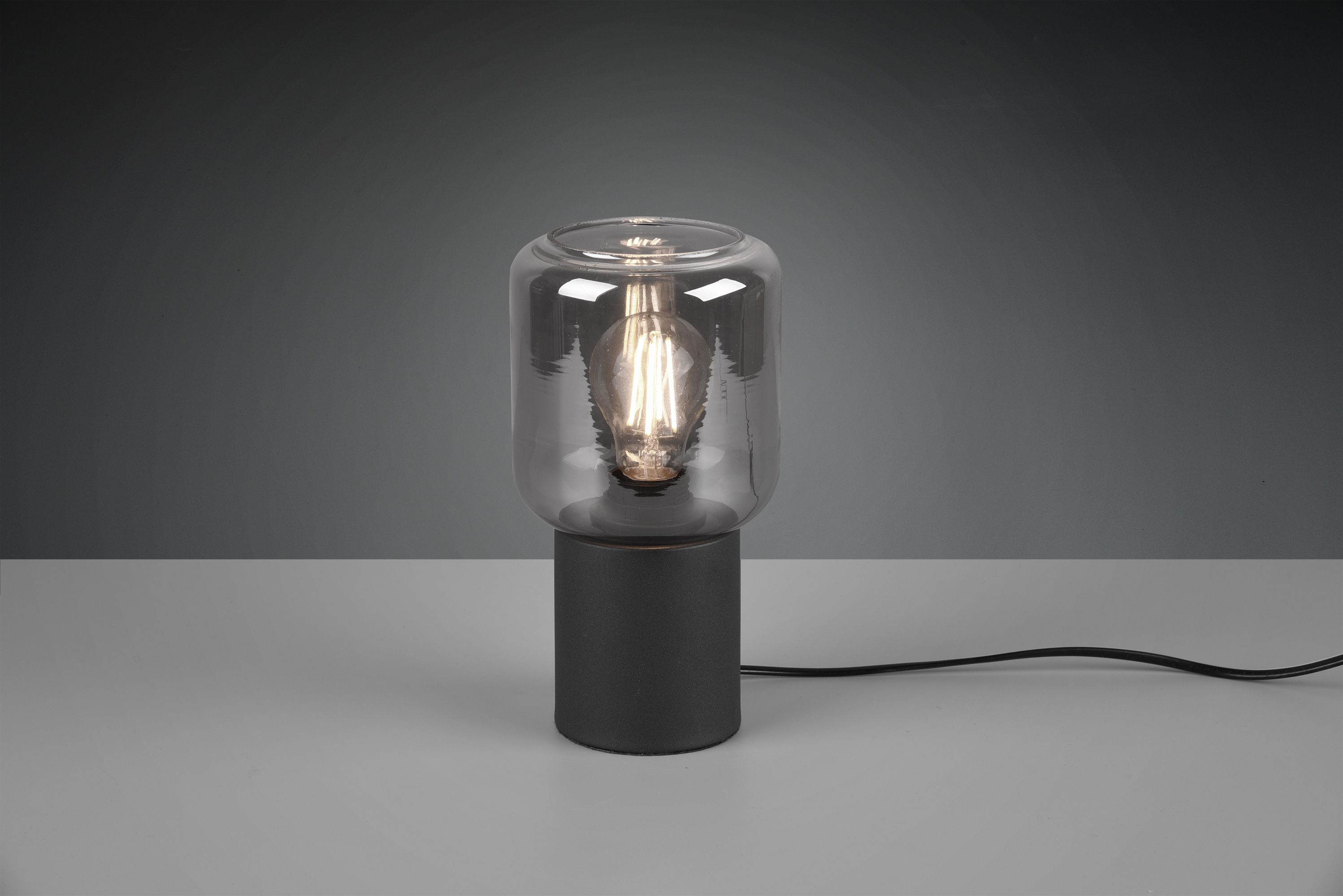 The modern NICO table lamp provides decorative light. The minimalist design looks elegant and also makes the lamp a modern decorative element. On a chest of drawers or side table, the table lamp provides soft and pleasant supplementary light. The light is equipped with a cord switch, making it easy to switch on and off. The combination of matt black and a smoke-coloured glass shade is particularly popular in modern and minimalist furnishing styles. For energy-saving lighting, it is recommended to use an LED illuminant. These are an optimal alternative to conventional halogen lamps and stand for a high quality of light and energy savings of up to 80%. In addition, LED lamps help you benefit from a long service life, low heat generation and at the same time protect the environment.