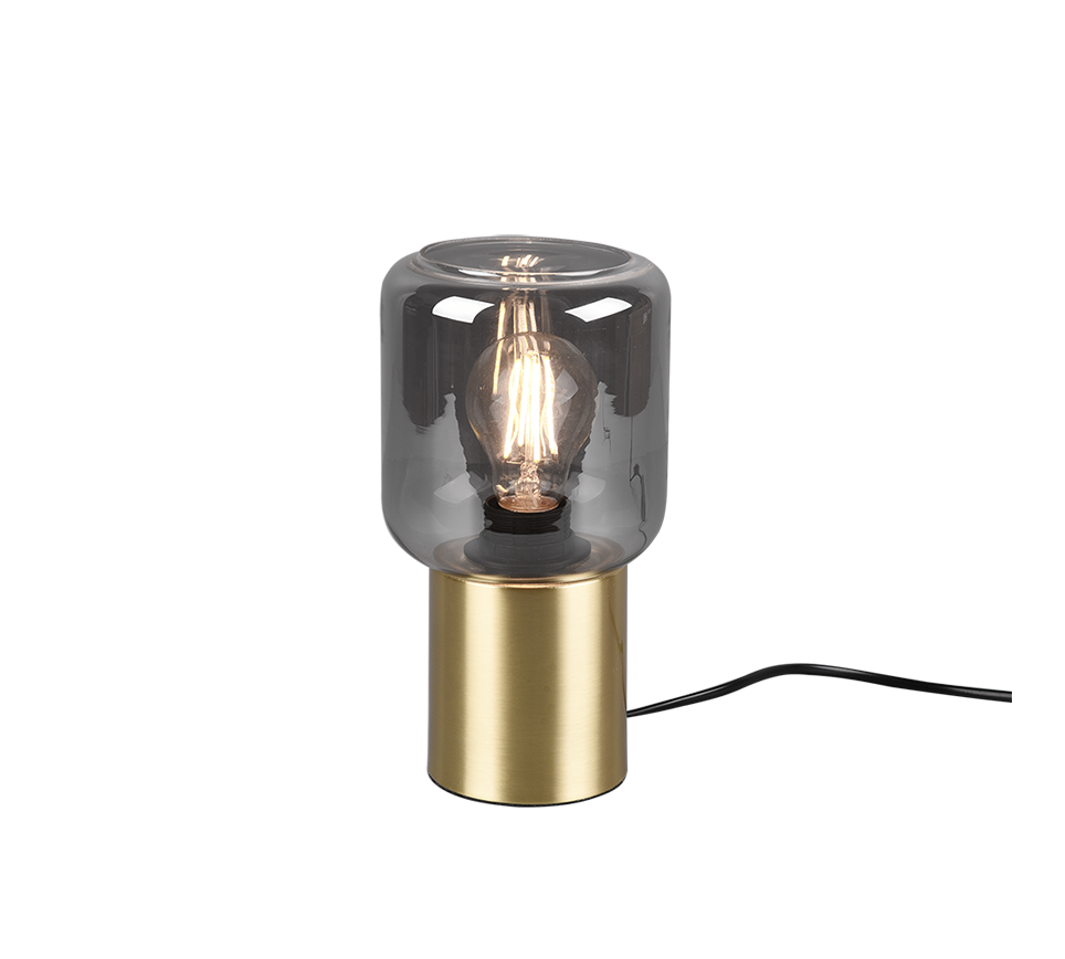 The modern NICO table lamp provides decorative light. The minimalist design looks elegant and also makes the lamp a modern decorative element. On a chest of drawers or side table, the table lamp provides soft and pleasant supplementary light. The light is equipped with a cord switch, making it easy to switch on and off. The combination of matt brass and a smoke-coloured glass shade results in a modern combination that can be used in a variety of ways. For energy-saving lighting, it is recommended to use an LED illuminant. These are an optimal alternative to conventional halogen lamps and stand for a high quality of light and energy savings of up to 80%. In addition, LED lamps help you benefit from a long service life, low heat generation and at the same time protect the environment.