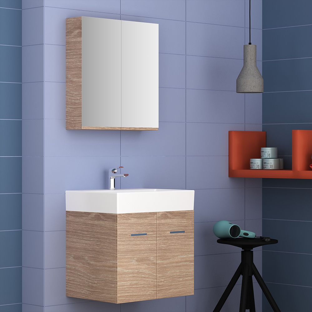 Orabella Amabile 60 - Κρεμαστό Έπιπλο Μπάνιου με πορσελάνινο νιπτήρα Tecla και καθρέπτη ντουλάπι F60162-70143-70104-60162