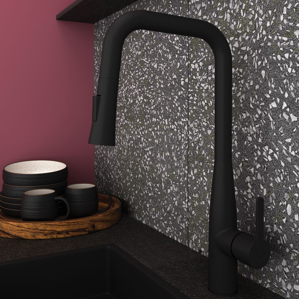 Orabella Comfort black matt - Μπαταρία Κουζίνας με αποσπώμενο ντουζ 2 ροών 20123