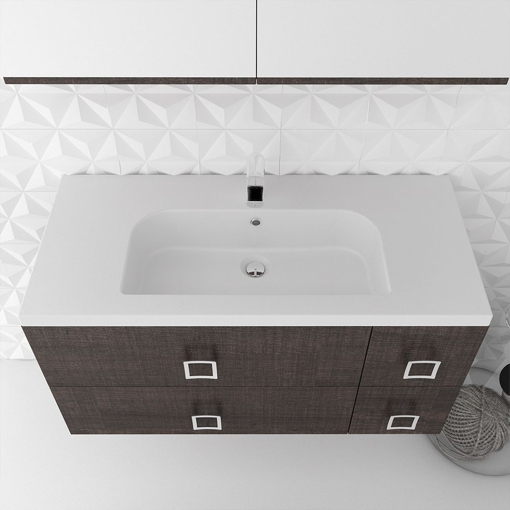 Orabella Mood 100 με δύο Πόρτες και δύο Συρτάρια - Κρεμαστό Έπιπλο Μπάνιου με πορσελάνινο νιπτήρα Tecla και καθρέπτη ντουλάπι F60161-70140-70107-60161