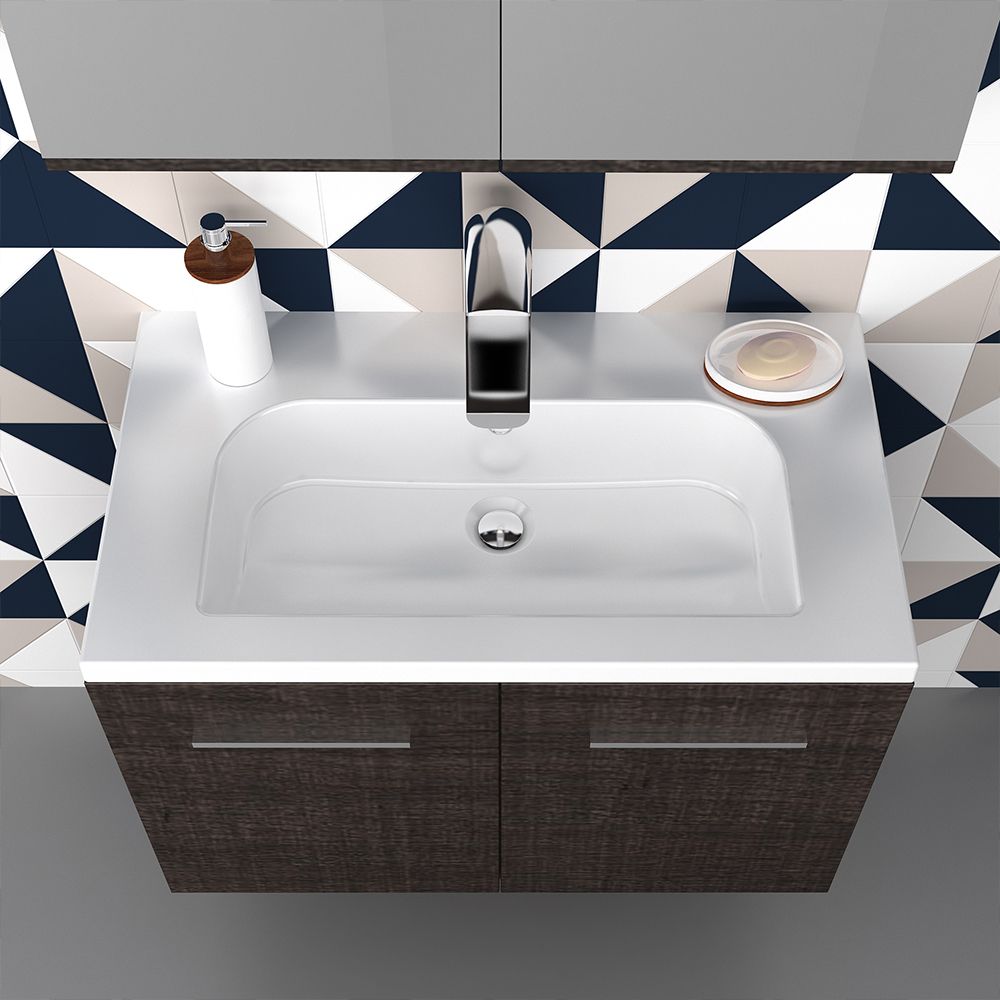 Orabella Mood 80 με δύο Πόρτες - Κρεμαστό Έπιπλο Μπάνιου με πορσελάνινο νιπτήρα Tecla και καθρέπτη ντουλάπι F60160-70136-70105-60160
