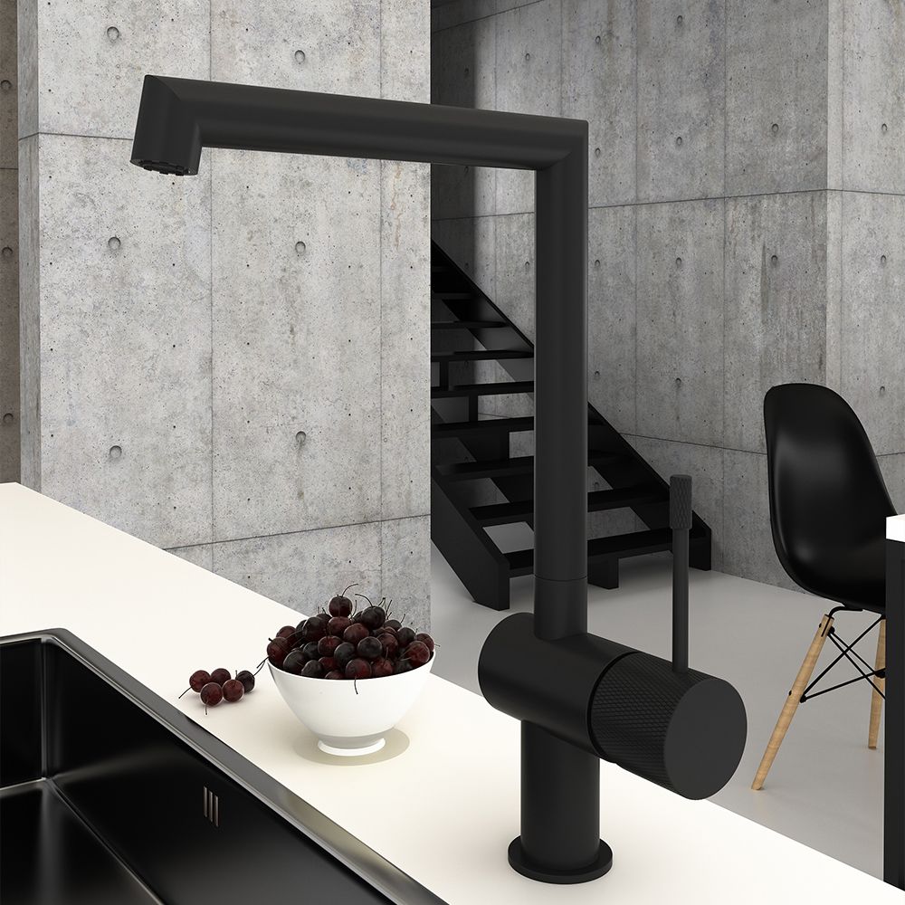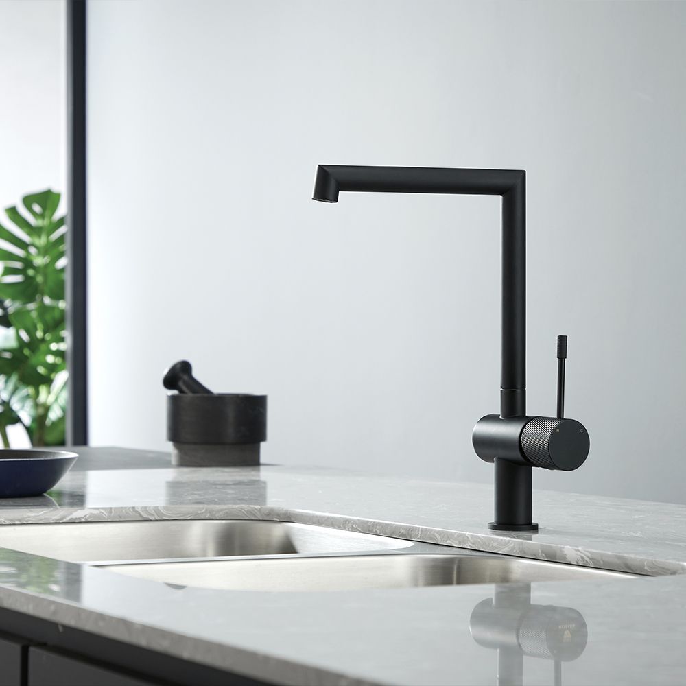 Μπαταρία κουζίνας Orabella, Siena με περιστρεφόμενο κορμό. Πρόκειται για μια μοντέρνα μπαταρία πάγκου, η οποία είναι κατασκευασμένη από τον οίκο Orabella, από υψηλής ποιότητας ορείχαλκο. Διατίθεται σε δύο χρωματικές επιλογές: χρωμέ και μαύρο ματ.