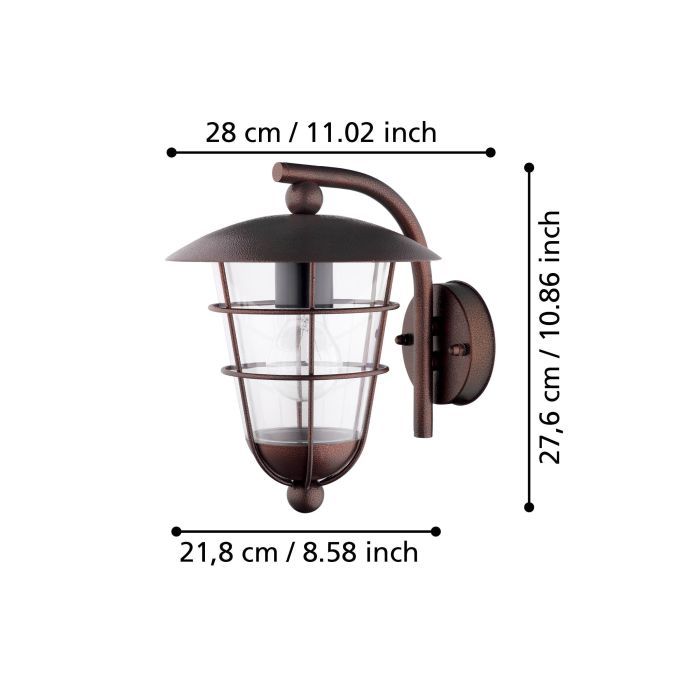 Λεπτομέρειες του προιοντος Αριθμός υλικού:94855Υλικό:επιχρυσωμένος χάλυβαςΧρώμα:καφέΥλικο Γυαλιού/Καπέλου:πλαστικόΧρώμα Γυαλιού/Καπέλου:διαφανήςΒαθμός προστασίας:IP44Λαμπτήρας περ. 1:ΑποκλειστικόςΤύπος Ντουι 1:E27Λειτουργίες:Αδιάβροχο (IP44), Δυνατότητα γωνιακής τοποθέτησηςεγγύηση:2 χρόνια