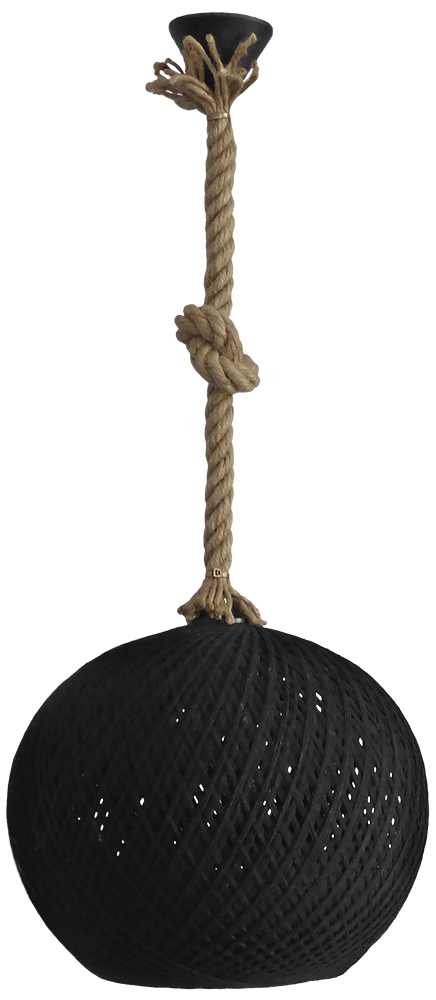 Κρεμαστό φωτιστικό μπάλα σχοινί μαύρη με φυσικό σχοινί κόμπος SILK-02 ROPE Φ35 BLACK UT-BL 1/L