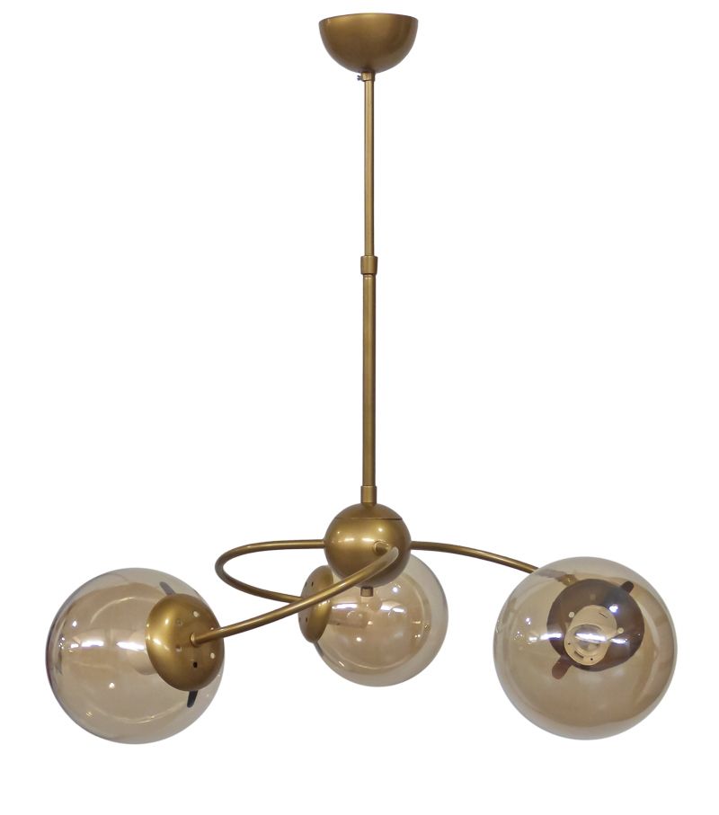 Φωτιστικό 3φωτο μεταλλικό,με γυάλινες μπάλες μελί TOP / 3L GOLD MAT Τεχνικά χαρακτηριστικά σκελετός μεταλλικός / μπάλες γυάλινες Χρώμα χρυσό ματ με μελί Η65 x Φ45cm 3 x E/27 LED